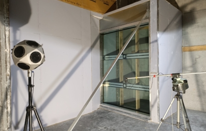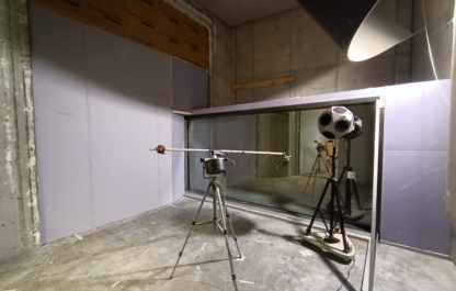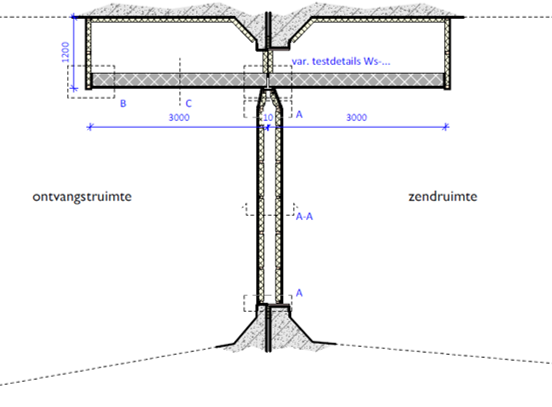 Voor het bepalen van de flankerende luchtgeluidisolatie wordt de te onderzoeken gevel of scheidingswand in ruimten 1 en 2 dwars op de meetopening aangebracht. De resterende openingen worden afgedicht met een hoog-geluidisolerende-constructie, zodat alleen geluidoverdracht kan plaats vinden van zend- naar ontvangvertrek via de te onderzoeken bouwkundige constructie.