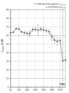 De Europese norm EN 16205 specificeert een methode om het loopgeluid van vloerafwerkingen te meten. Op een proefstuk worden loopgeluiden gesimuleerd met behulp van een gestandaardiseerde “hamerklopmachine”. Het proefstuk ligt op de gestandaardiseerde betonnen vloer van het akoestisch laboratorium. Het geluid dat hierdoor ontstaat, wordt in dezelfde ruimte gemeten en geanalyseerd. Met een A-weging wordt het geluid omgezet naar één getal. Het resultaat is een maat voor de ‘geluidafstraling’ van het lopen op die specifieke vloer.
