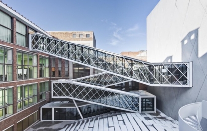 Tussen het oude gebouw en de nieuwe achterbouw is een amfitheater als kloppend hart voorzien. Transparante passerelles van 25 m lang, ‘tubes’, brengen het publiek langs deze ontmoetingsplaats naar de verschillende ruimtes in het gebouw. Ze animeren zo de buitenruimte. Deze passerelles hangen tussen de gebouwen en laten de oorspronkelijke structuur van het gebouw zo veel mogelijk leesbaar.