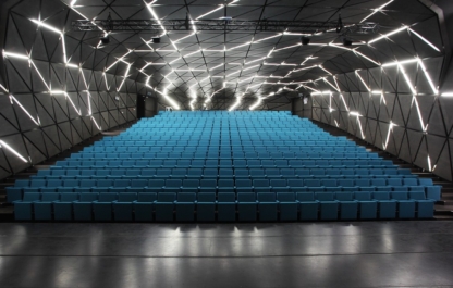 Boven op de grote zaal is de buitenruimte met het dak als buitentheater, dat ook akoestisch perfect gescheiden is van de zaal en gelijktijdig met de grote zaal kan gebruikt worden.