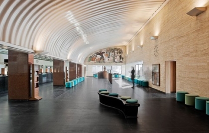 Het geklasseerde postgebouw van Gaston Eysselinck uit 1953 werd omgebouwd tot een bruisend cultuurhuis. De restauratie gebeurde met respect voor het bestaand gebouw en haar originele structuur. Tussen het oude postgebouw en de nieuwe achterbouw ligt een amfitheater, als kloppend hart. Transparante passerelles animeren deze buitenruimte. Ze verbinden de 2 gebouwen.