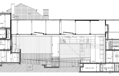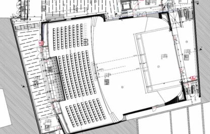 Deze nieuwe gebouwdelen worden structureel volledig ontkoppeld van de aanpalende gebouwen. Bijkomend zijn de repetitieruimten zijn uitgewerkt volgens het ‘doos-in-doos’ principe, waardoor gelijktijdig gebruik met alle omringende functies en de zaal mogelijk is.