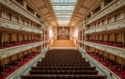 De bestaande concertzaal wordt volledig gerenoveerd. Om de nodige maatregelen te bepalen werden eerst in-situ metingen uitgevoerd, waaruit bleek dat de nagalmtijd te hoog was. Vervolgens werd een 3D-model van de bestaande situatie opgemaakt en werd dit geijkt aan deze metingen. Met dit model konden de mogelijke akoestische maatregelen getest worden. Zo is één van de maatregelen het vervangen van het tapijt van de parterre door een houten vloer, en het vervangen van de bestaande zetels door een minder absorberende variant. Om dit advies degelijk te kunnen onderbouwen, werd de absorptiecoëfficiënt van de bestaande stoelen getest in ons akoestisch labo en konden de eigenschappen van de nieuwe stoelen verfijnd worden.