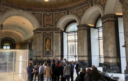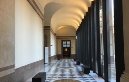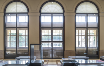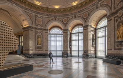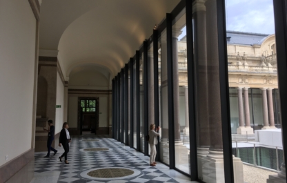 De verbinding tussen het bestaande gedeelte en het nieuwe paviljoen omvat enkele auditoria en een tijdelijke tentoonstellingsruimte waarbij spraakverstaanbaarheid en geluidisolatie aandachtspunten waren. Een bijzondere aandacht ging ook naar de zone van de tijdelijke tentoonstellingsruimte en de galerij tussen het inkomgebouw en het bestaande museumgebouw. Hier worden twee functies bij elkaar gebracht met een mogelijk akoestisch conflict: de galerij is een doorgang met veel passage; deze bezoekers gaan niet noodzakelijk naar de tentoonstellingsruimte, die hierdoor mogelijk hinder ondervindt van de galerij. Een goed geluidabsorberend plafond in de centrale galerij / onderdoorgang en een eerder beperkte interface tussen deze circulatie en de museumruimten was een oplossing voor dit probleem.