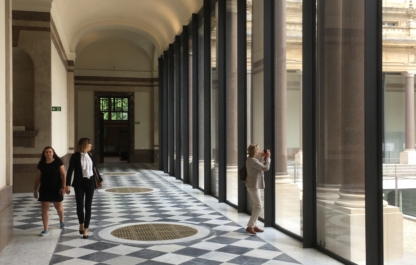 Het advies inzake brandveiligheid omvat de compartimenering van het nieuwbouwpaviljoen met als belangrijke randvoorwaarde de open centrale trap, alsook het het behandelen van de brandveiligheid van het historische gebouw.