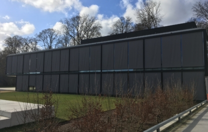 Het nieuwe inkompaviljoen is een sterk beglaasd volume met een buitenzonnweringssyteem op de oost- en zuidgeorienteerde gevels. Het voorkomen van het gebouw in zijn omgeving wordt sterk bepaald door de mate van doorzicht door de beglaasde structuur, en door de reflectie van omgevingselementen.