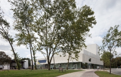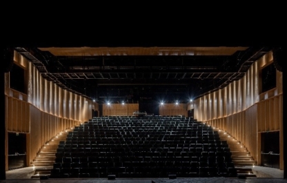 De volledig uitgeruste theaterzaal heeft een capaciteit van 450 zitplaatsen en heeft een warm karakter door het gebruik van hout.