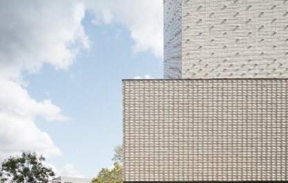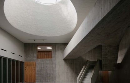 In een vierkant grondplan worden de programmaonderdelen geschikt rond een centrale foyer met monumentaal bovenlicht.