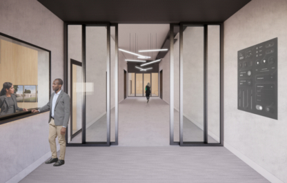 Het kubusvormige gebouw is niet alleen klimatologisch robuust ontworpen, het is ook – als een vesting – op een natuurlijke manier goed beveiligd. Gasten en medewerkers melden zich bij het expressieve hekwerk dat uitkomt op een als binnenplaats vormgegeven entreeplein, waar tevens ruimte is voor expeditieverkeer. Via de balie bij de hoofdingang worden bezoekers meteen naar de bovenste verdieping geleid, waar zich de kantoren, onderzoeks- en ontvangstruimtes bevinden. Houten lambrisering, daklichten en ramen als schilderijlijsten zorgen hier voor een prettige, lichte werkruimte en een fenomenaal uitzicht over de omgeving.