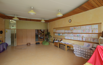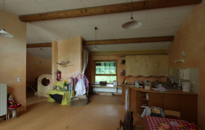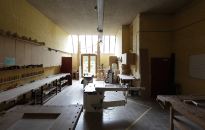 Door het inbrengen van een vloer werd de bestaande toneelzaal in de foyer opgesplitst in een turnruimte (onderaan) en een polyvalente zaal (bovenaan). Deze ingrijpende beslissing werd in nauw overleg genomen met alle betrokkenen en betekende uiteindelijk een grote meerwaarde voor de school, waarbij tegelijk het karakter van het bestaande gebouw gerespecteerd werd.