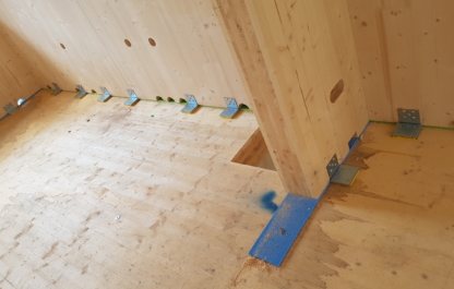 Een belangrijke uitdaging bij CLT is de sterke koppeling tussen vloeren en wanden ter hoogte van de verbindingen. Dit verhoogt het risico op flankerende geluidsoverdracht. Noodzakelijk zijn: